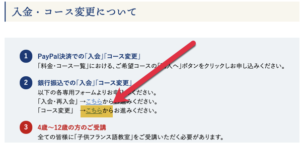 ▶▶STEP2.「新たなコースの月謝を入金」してください。生徒様による変更手続きは以上です。